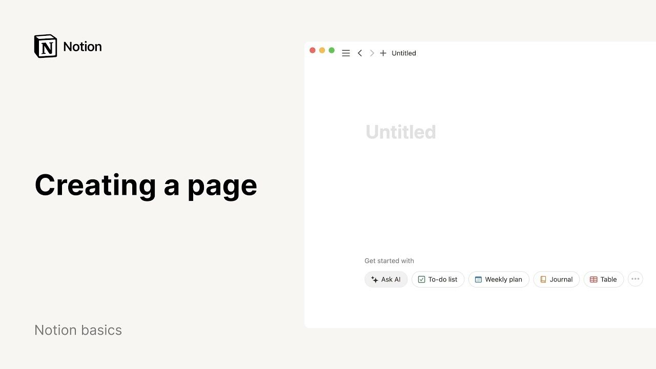 Need some inspiration or structure? On desktop or web, select any of the options at the bottom of the page to get started. You can import from an app or file, use a template, create a table, and more β select an option you like, and your page will be formatted accordingly!